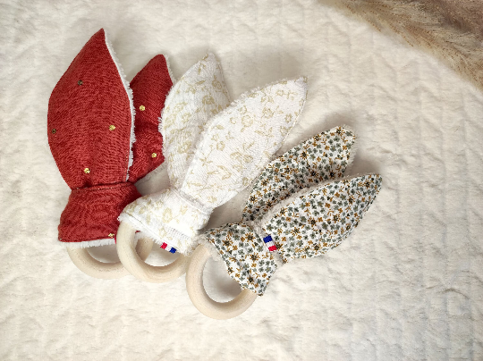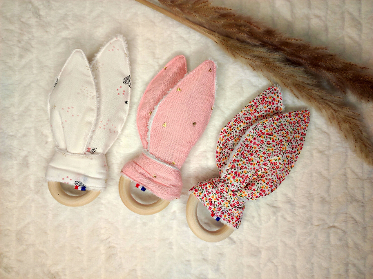 Adorable hochet lapin en coton et en éponge bambou toute douce. Son anneau en bois non traité permettra à bébé de l’attraper facilement, et de pouvoir soulager ses gencives.